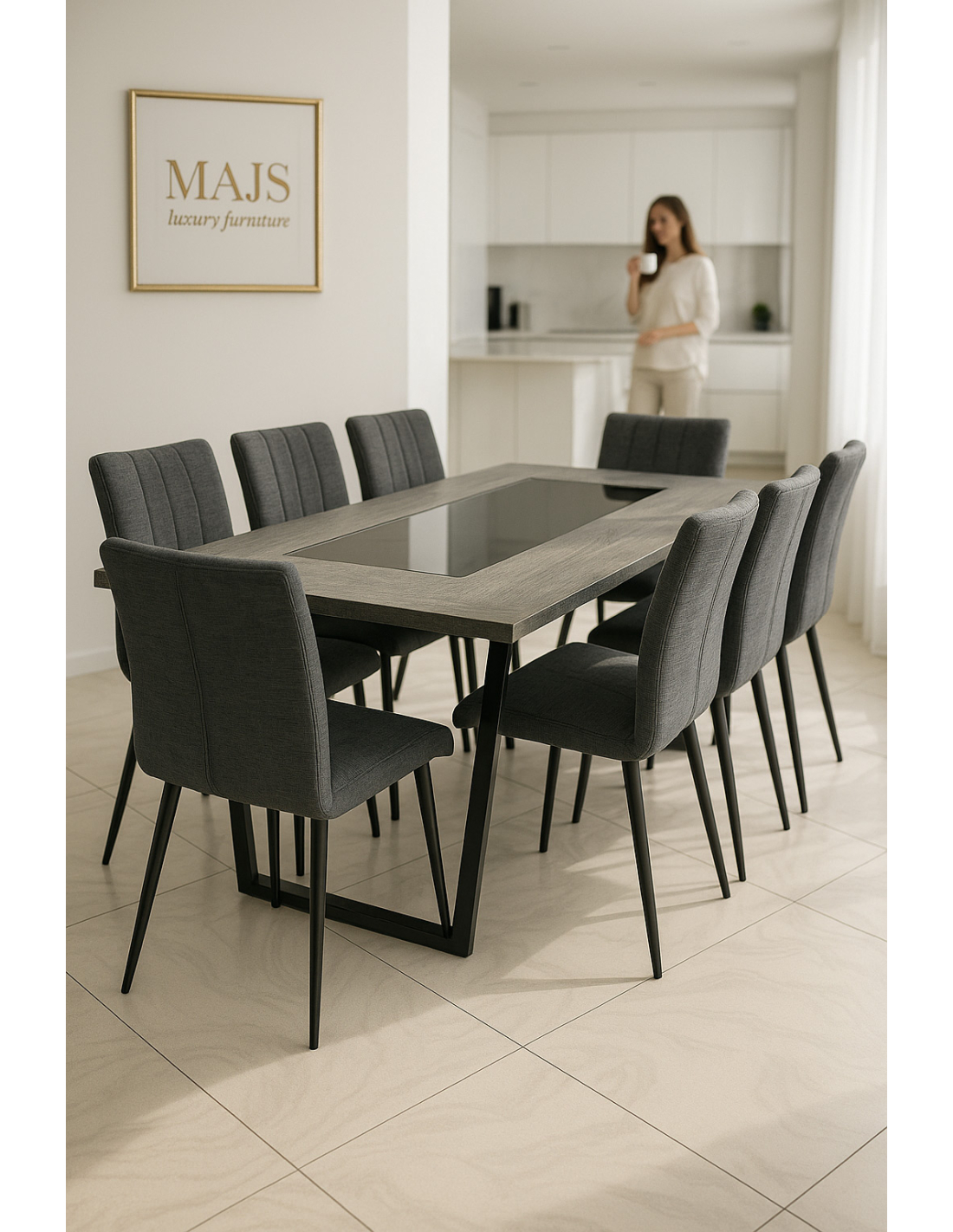 Dzięki połączeniu materiałów stół jest zarówno dekoracyjny, jak i funkcjonalny – idealny do codziennych posiłków, spotkań z rodziną czy przyjęć.