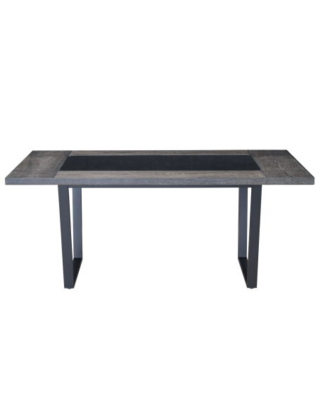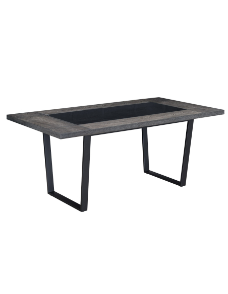 Nowoczesny stół, który łączy naturalne drewno z elegancką szklaną wstawką, tworząc efektowny element aranżacji jadalni. Solidne metalowe nogi zapewniają stabilność konstrukcji i podkreślają nowoczesny charakter mebla.