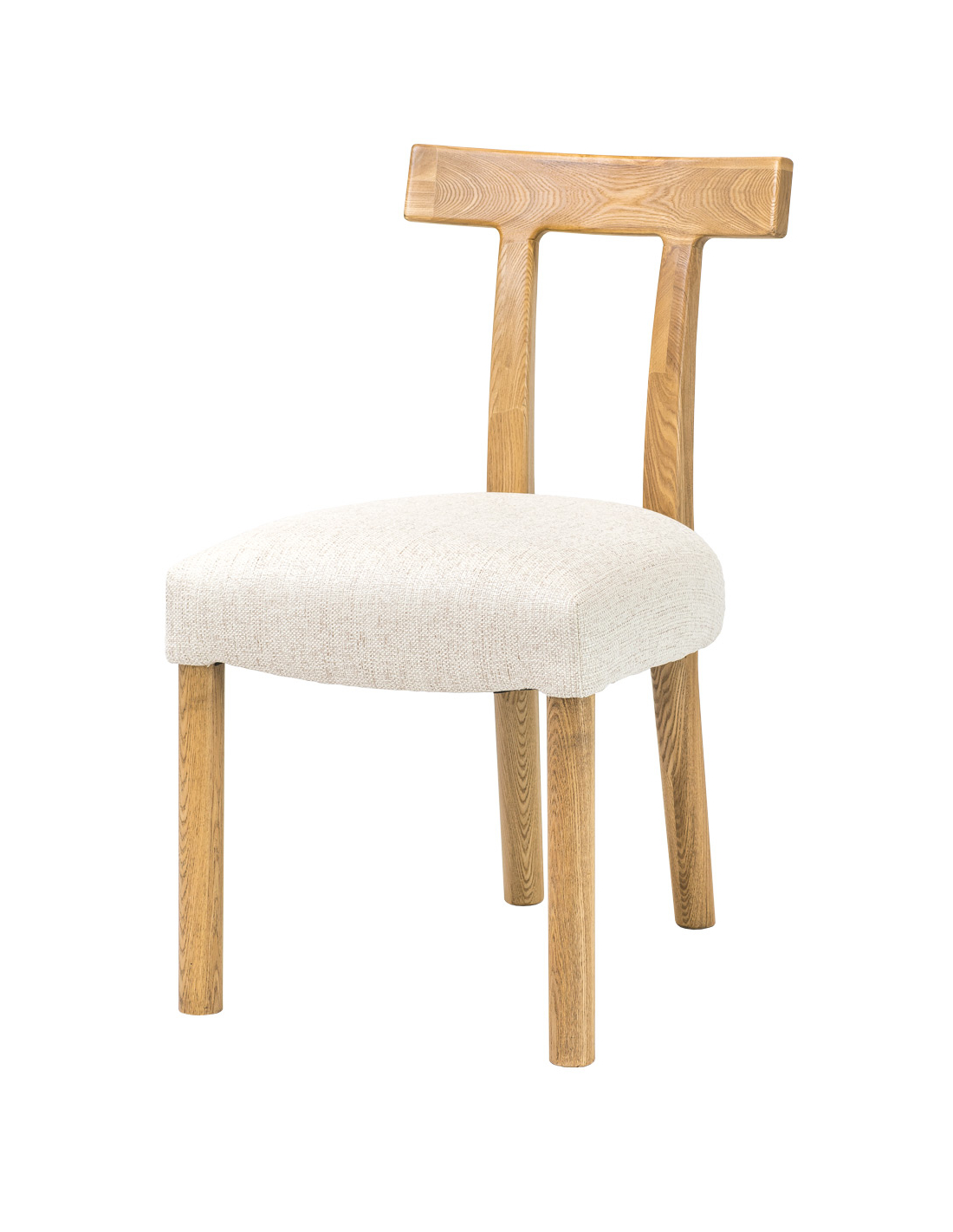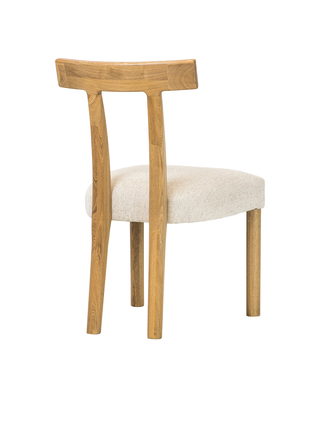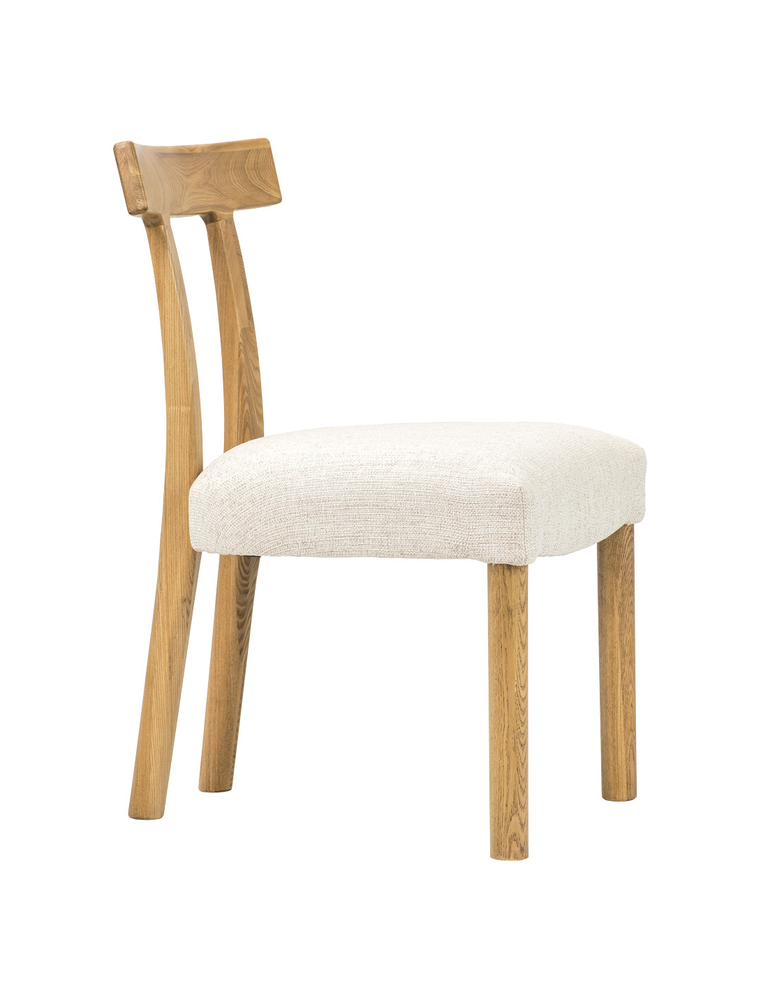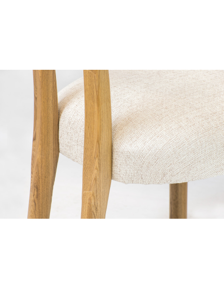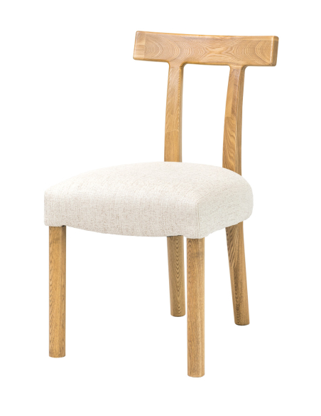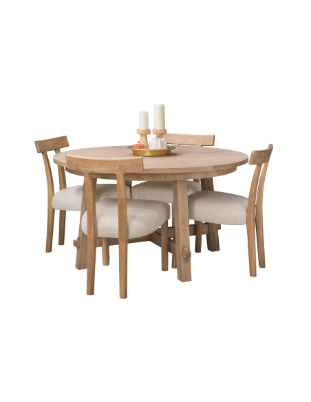W zestawie znajdują się cztery stylowe krzesła wykonane z naturalnego drewna dębowego. Tapicerowane miękkie siedzisko zapewnia wysoki komfort podczas codziennych posiłków oraz dłuższych spotkań przy stole.